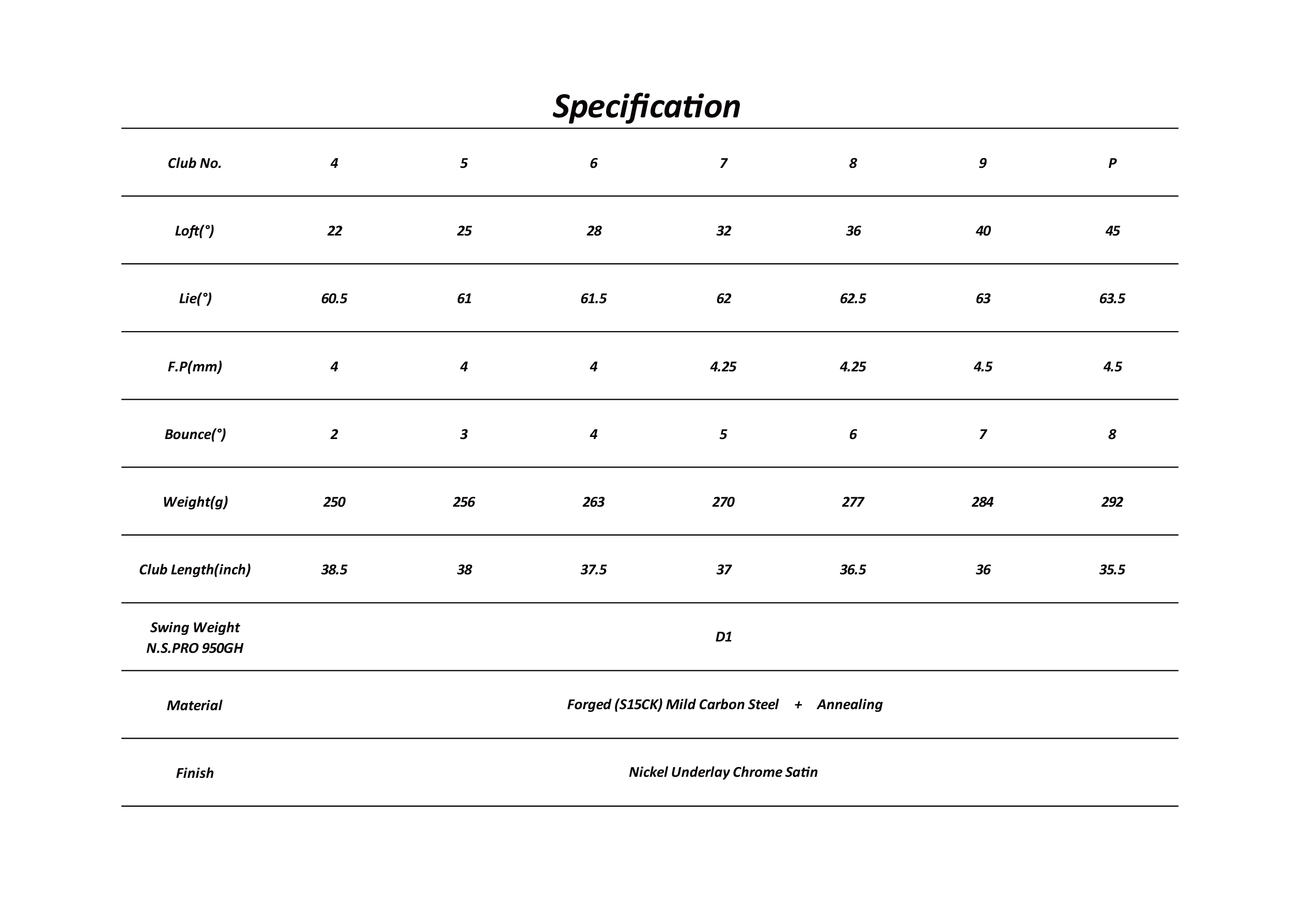 ●FG-101CB TOUR FORGED IRONS フルキャビティ構造だから実現できるやさしさは、 いつだってプレーヤーに味方してくれる ~ 全てのゴルファーに、究極の打感を届けたい ~ プロゴルファーに支給するなど、特別な製品にのみ採用してきた藤本技工の伝統技術”焼きなまし”を採用 誰もが唸る究極の打感を”TOUR FORGED”として製品化 さらに、通常のFG-101CB FORGEDからフェース形状をシャープにすることによって、よりアグレッシブに攻める事が出来るイメージをプラス ☆注意事項 ●メッキ製品ではありますが、お取り扱いにより錆等が発生することがございます。 ●ご使用後はお手入れをして頂き、多湿の場所を避けるなど、保管方法にはご注意願います。