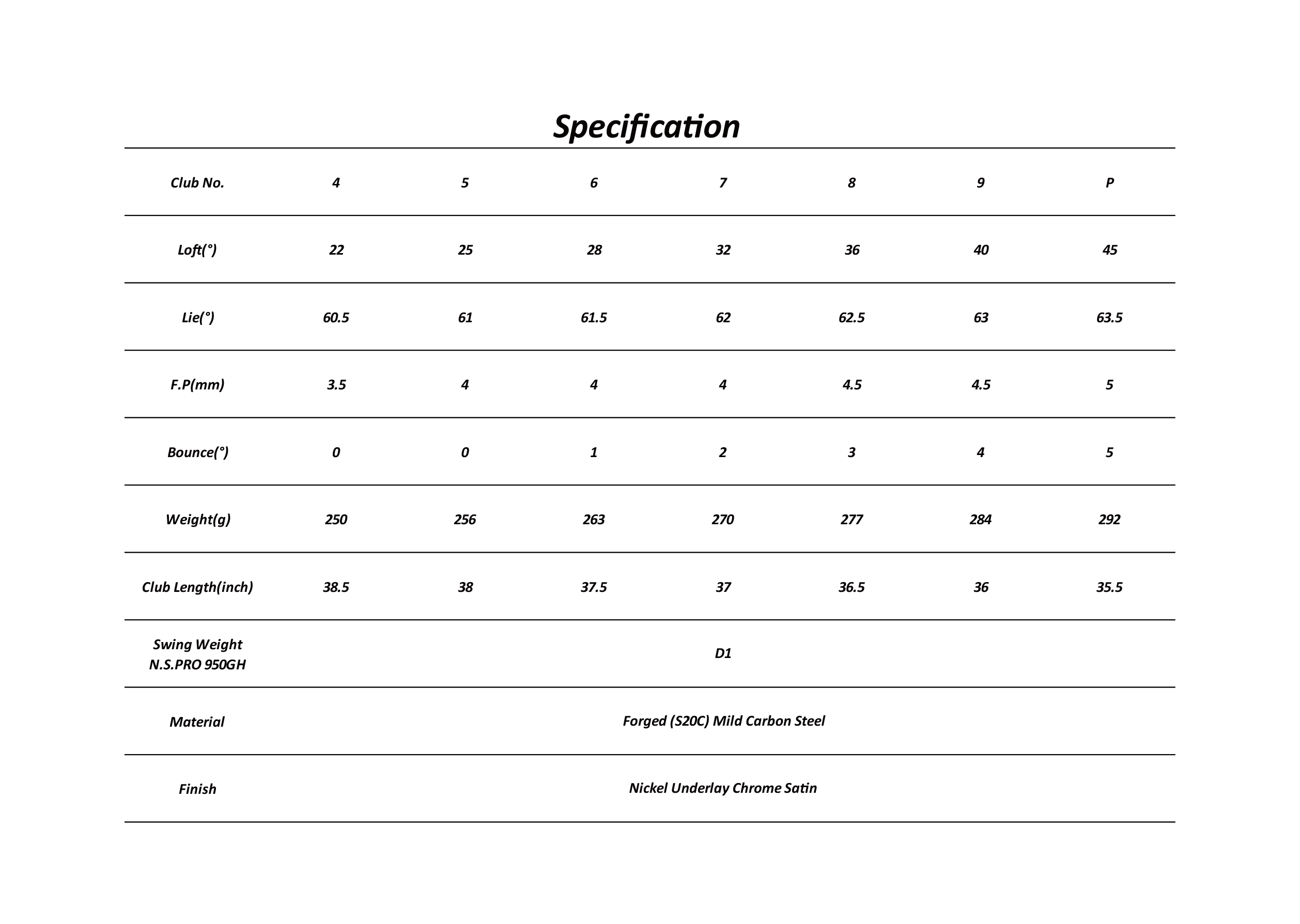 ●FG-101HIA FORGED IRONS (LEFT) マッスルバックの精鍛さとキャビティバックの寛容性を両立するべく開発。 製造特許取得の半中空構造によりできた40g程の余剰重量が、ヘッド全体を大きくすることに成功。 ヘッドが大きくなり、ソール幅が広くなったことで、マッスルバックアイアンでは得ることが出来なかった寛容性をプラス。 また、溶接を最小限にとどめることで、従来の中空アイアンでは確立することのできなかった打感の良さを実現。 ※FG HIA Muscle (LEFT)のデザイン変更となります。 ☆注意事項 ●メッキ製品ではありますが、お取り扱いにより錆等が発生することがございます。 ●ご使用後はお手入れをして頂き、多湿の場所を避けるなど、保管方法にはご注意願います。
